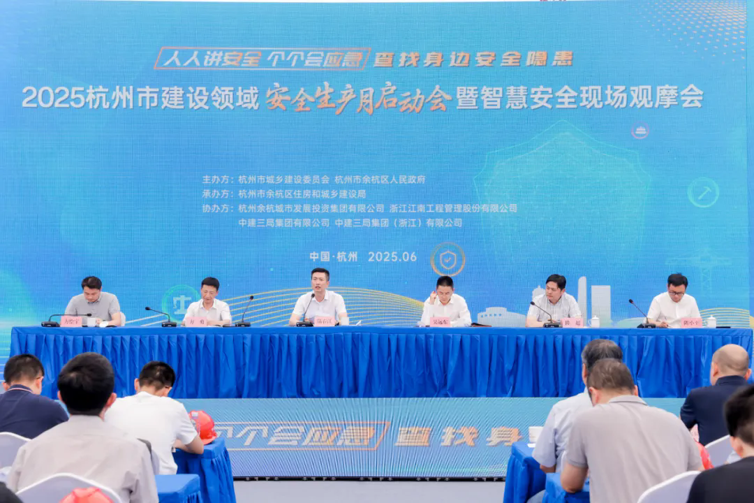 2025年6月6日,海滨集团副总经理陈福祥带领质安部负责人俞浩军等一行,参加杭州市建设施工领域“安全生产月”现场观摩会。此次观摩会在杭州余杭国际体育中心项目举行,围绕“人人讲安全,个个会应急”主题,集中展示了智能建造、智慧工地、安全生产管理等先进技术和创新实践。